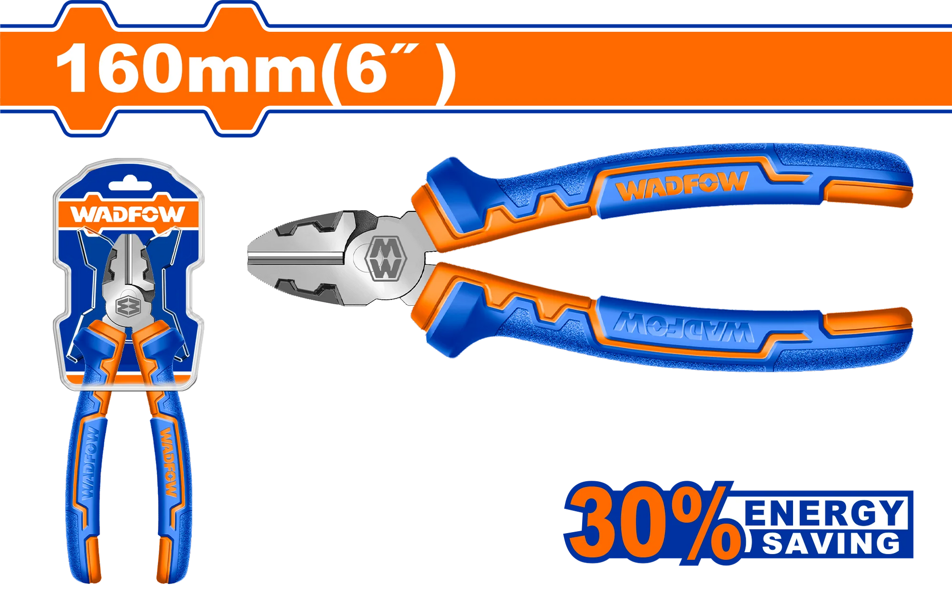 Size: 6"/160mm, Energy saving 30% than normal pliers, Surface treatment: black finish and polish, Two color handle for strong grip and comfort, With deburning function, Packed by half double blister